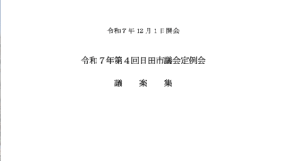 ふるさと日田 令和7年第4回(12月)定例会 12月1日に開会され19日に閉会予定の令和7年第4回日田市議会定例会に提出された内容は、議案19件【内訳:条例議案6件、契約締結議案1件、変更契約締結議案1件、字界変更議案1件、指定管理者指定議案9件、予算議案1件】、報告1件です。詳細は日... 2025.12.05 ふるさと日田令和7年定例会市議会活動